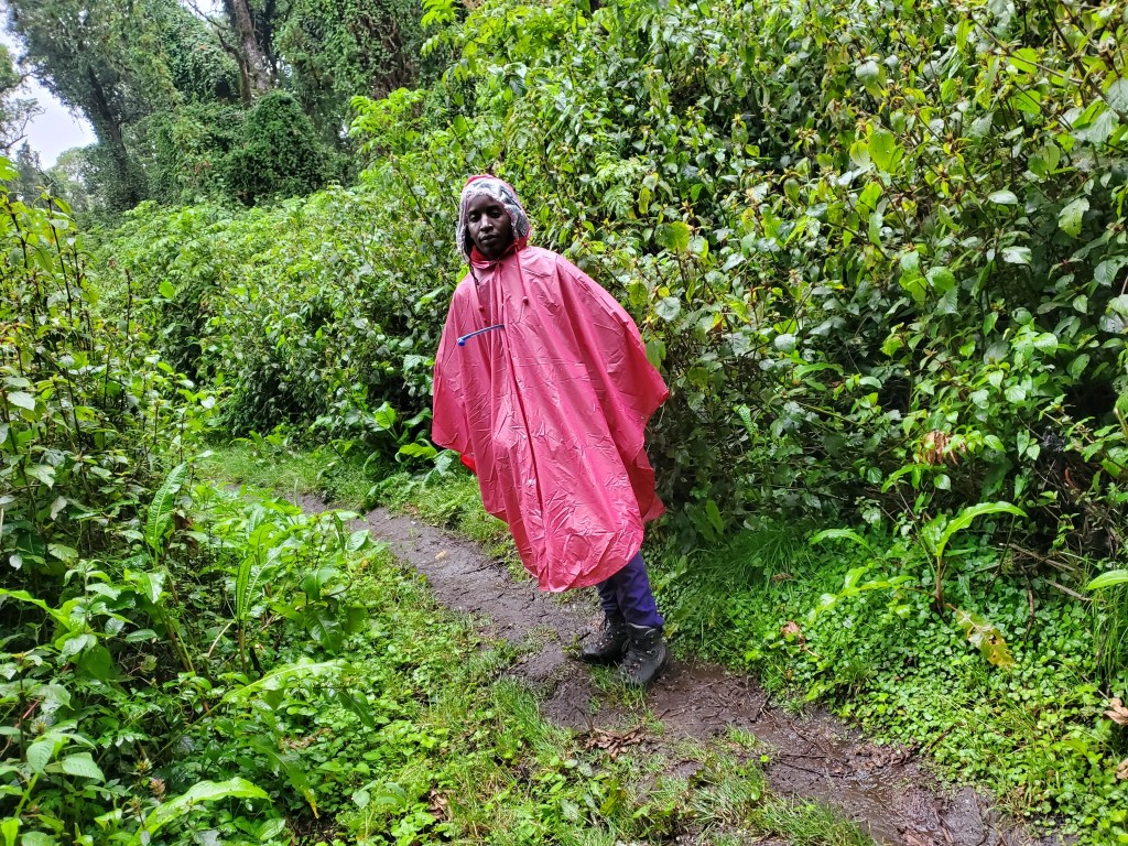 As we approached Sasa River Camp, a heavy downpour gave us a run for our poncho money. As we were told, it rains unexpectedly on Mount Elgon; hence you need to be prepared, and beyond that, do not let rainmakers eat your money. But heyhoo! Come rain, come sun, we had to reach Mude camp before dark.